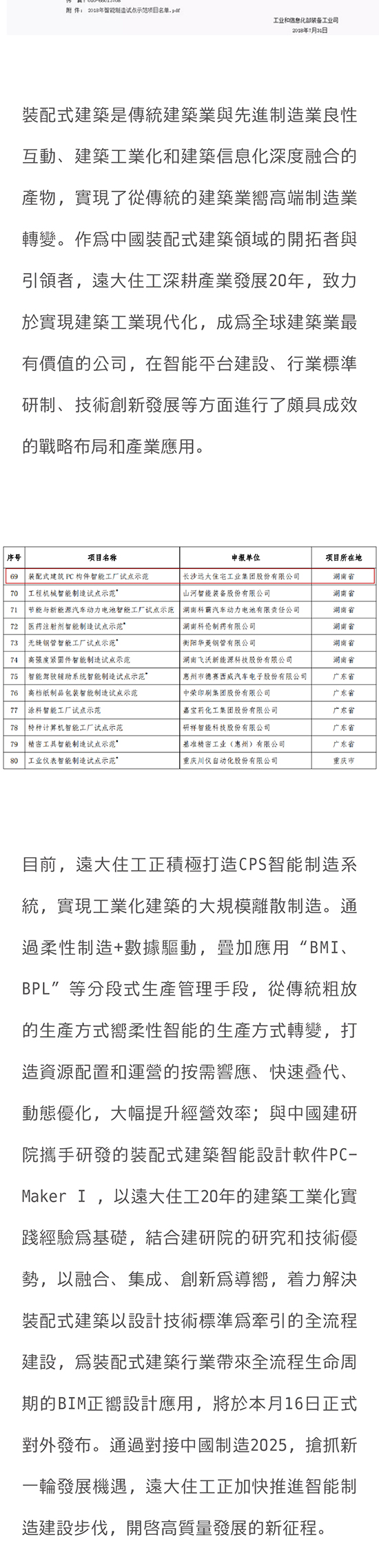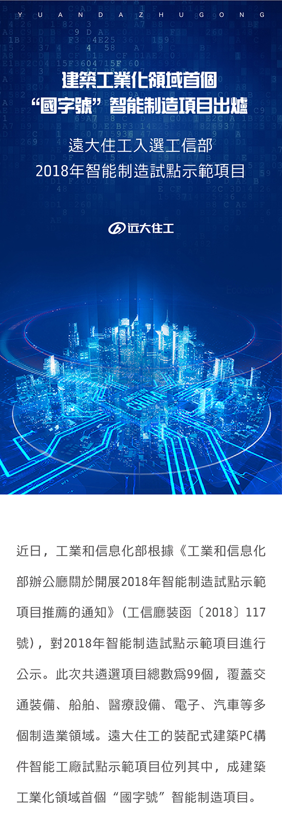 建築工業化領域首個“國字號”智能制造項目出爐 遠大住工入選工信部2018年智能制造試點示範項目
