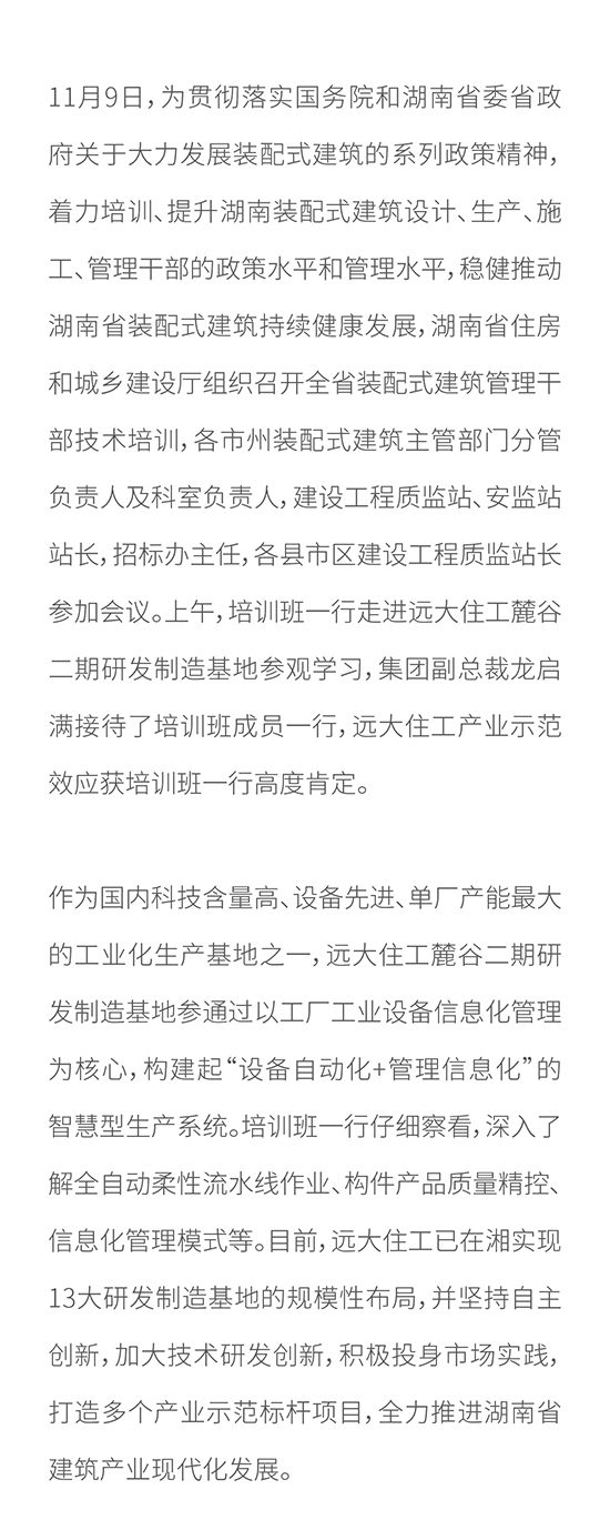 湖南省装配式建筑管理干部技术培训在长举行 远大住工产业示范效应获肯定