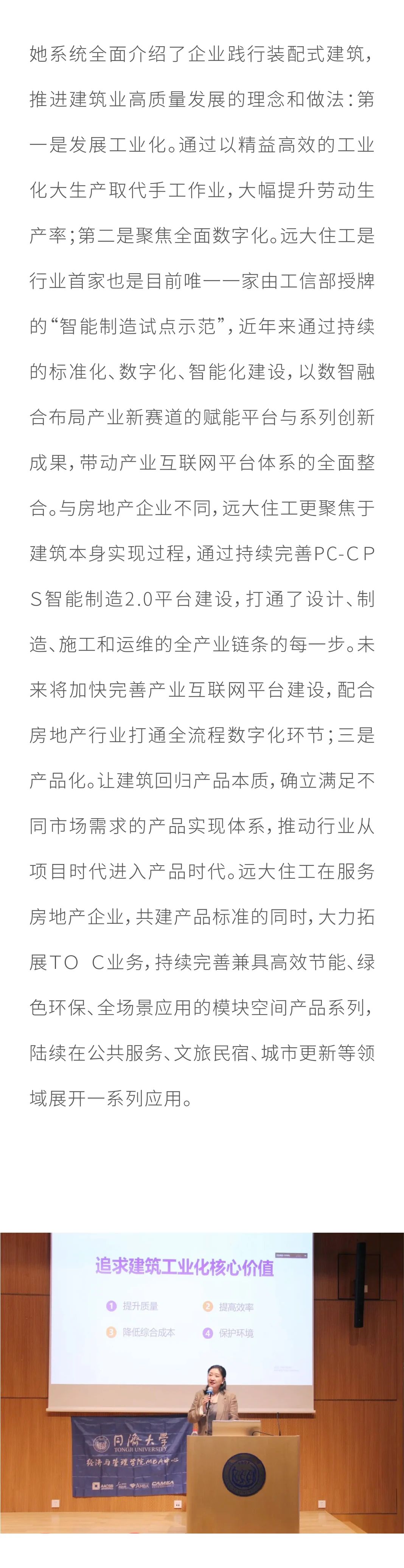 产教融合 协同育人 远大住工董事、总裁唐芬走进同济大学开讲啦!